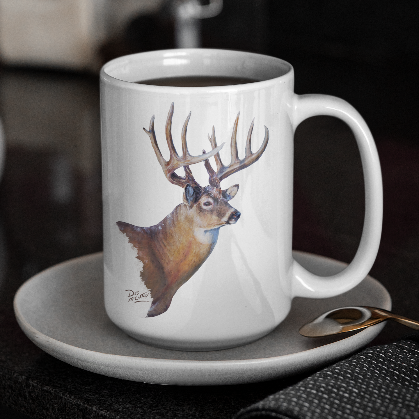 These mugs feature a high-quality reproduction of Des McCaffrey’s original wildlife oil paintings—each one capturing the raw spirit and character of Western Canada’s most iconic animals.